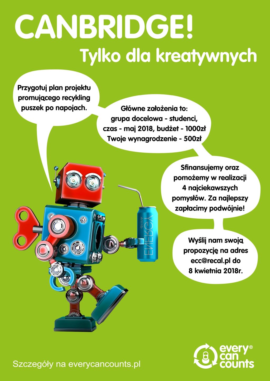 Fundacja na rzecz Odzysku Opakowań Aluminiowych RECAL ogłasza konkurs dla studentów na projekt promujący recykling puszek po napojach.